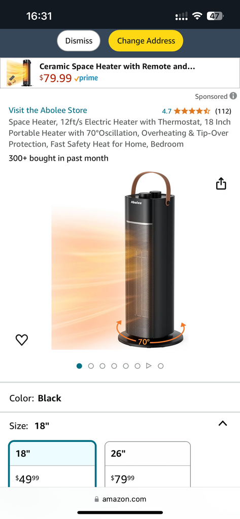 Quạt sưởi gốm ABOLEE (hàng bán trên A.mazon 50$)